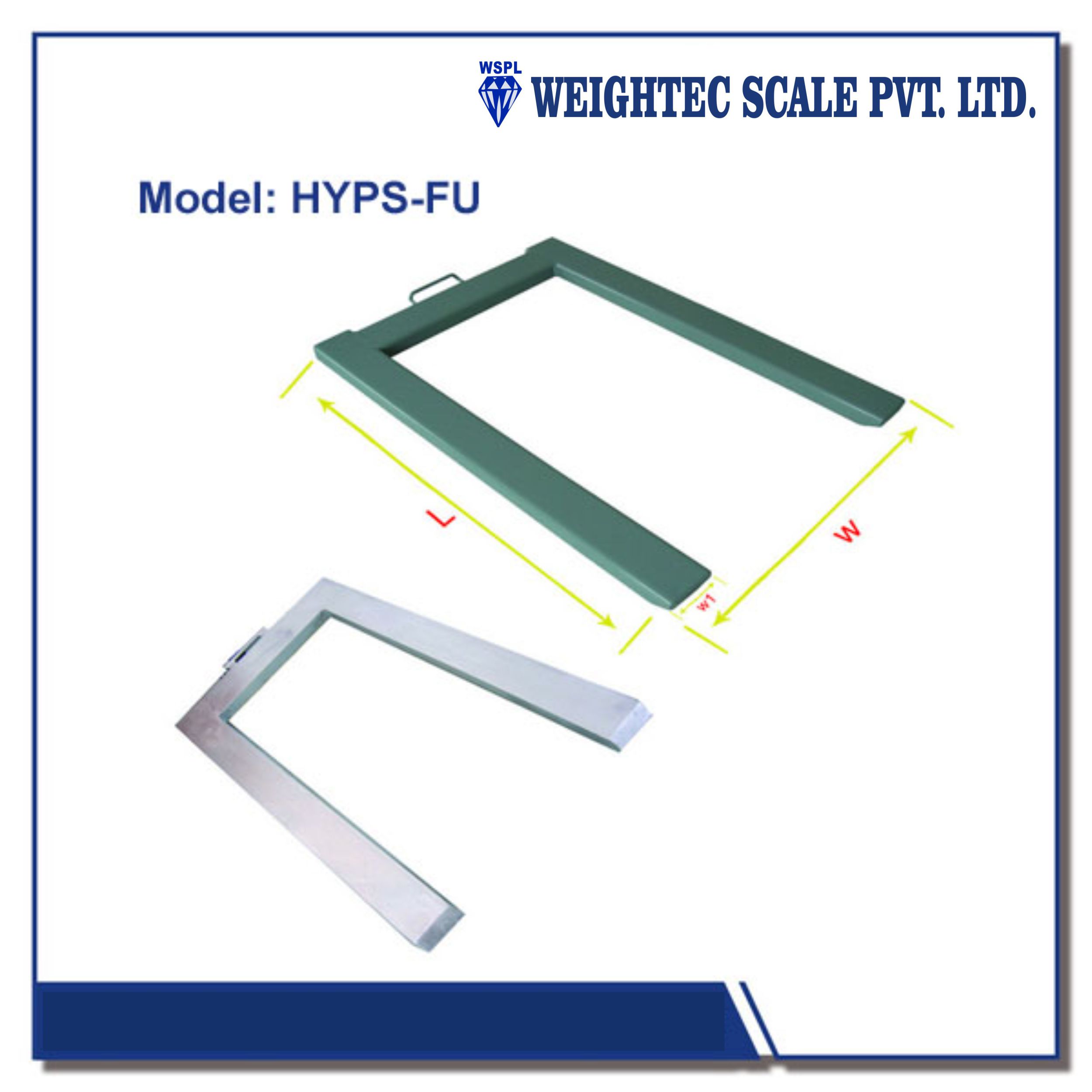 1. M ild steel, powder coated(galvanized is also available), durable 2.Fitted with 4 shear-beam alloy steel approved load cells with IP67 protection from dust and water 3.With handle and wheels for moving it 4. Adjustable, antislip feet 5.Shielded 5m long cable with connectors for connection to the indicator Applications: Easy to move, pallet-weighing module. Suitable for industrial and commercial applications, in which it’s necessary to quickly weigh goods on pallet trucks or lift trucks. Standard version is with approved load cell. Specifications: